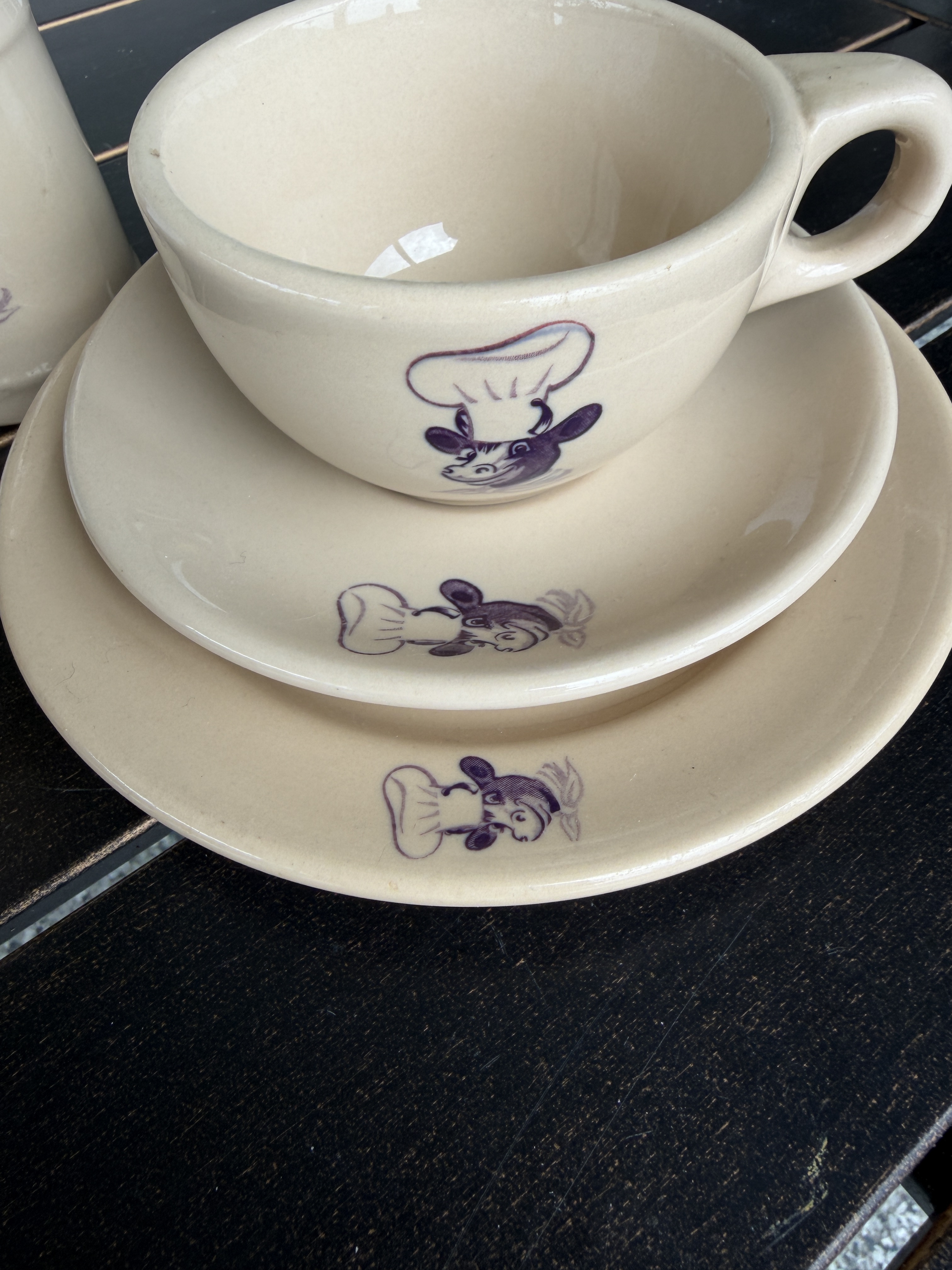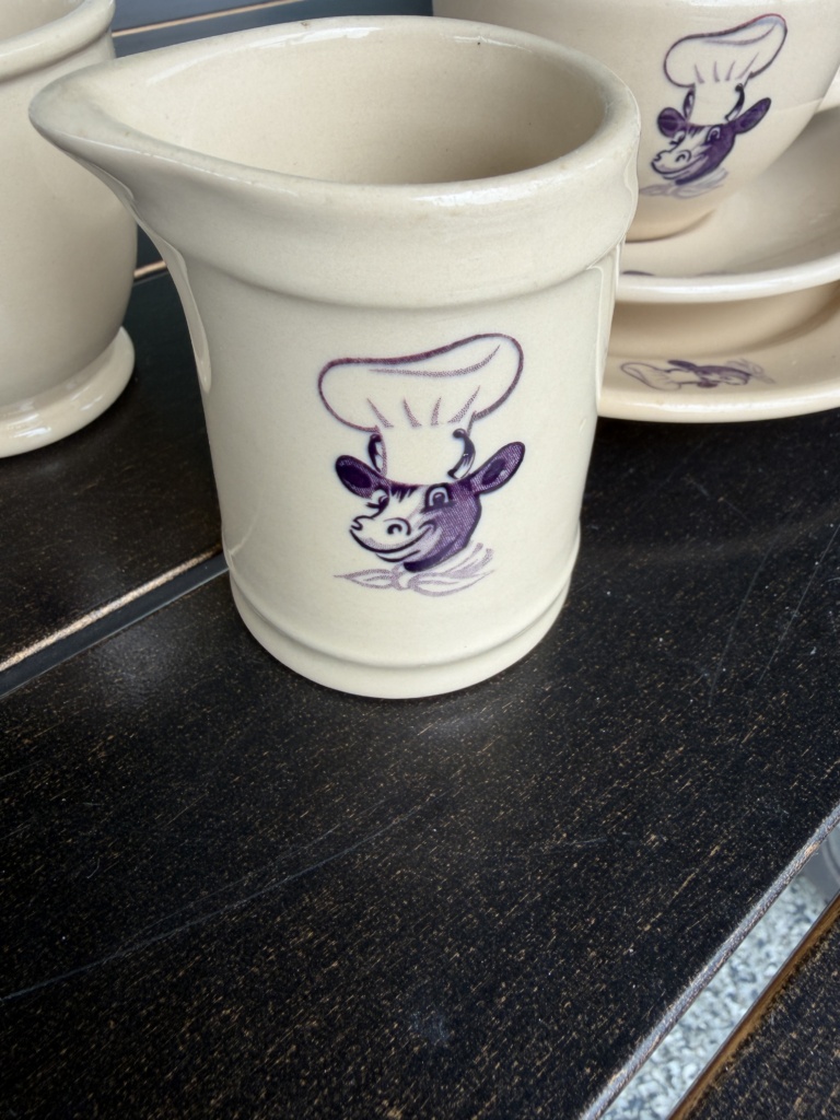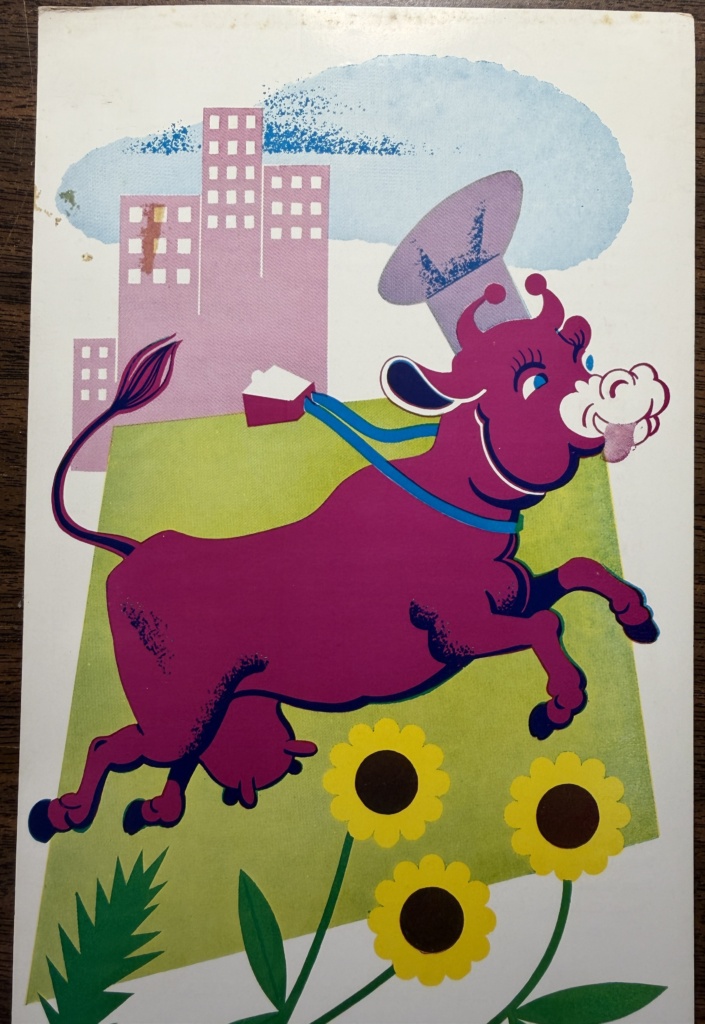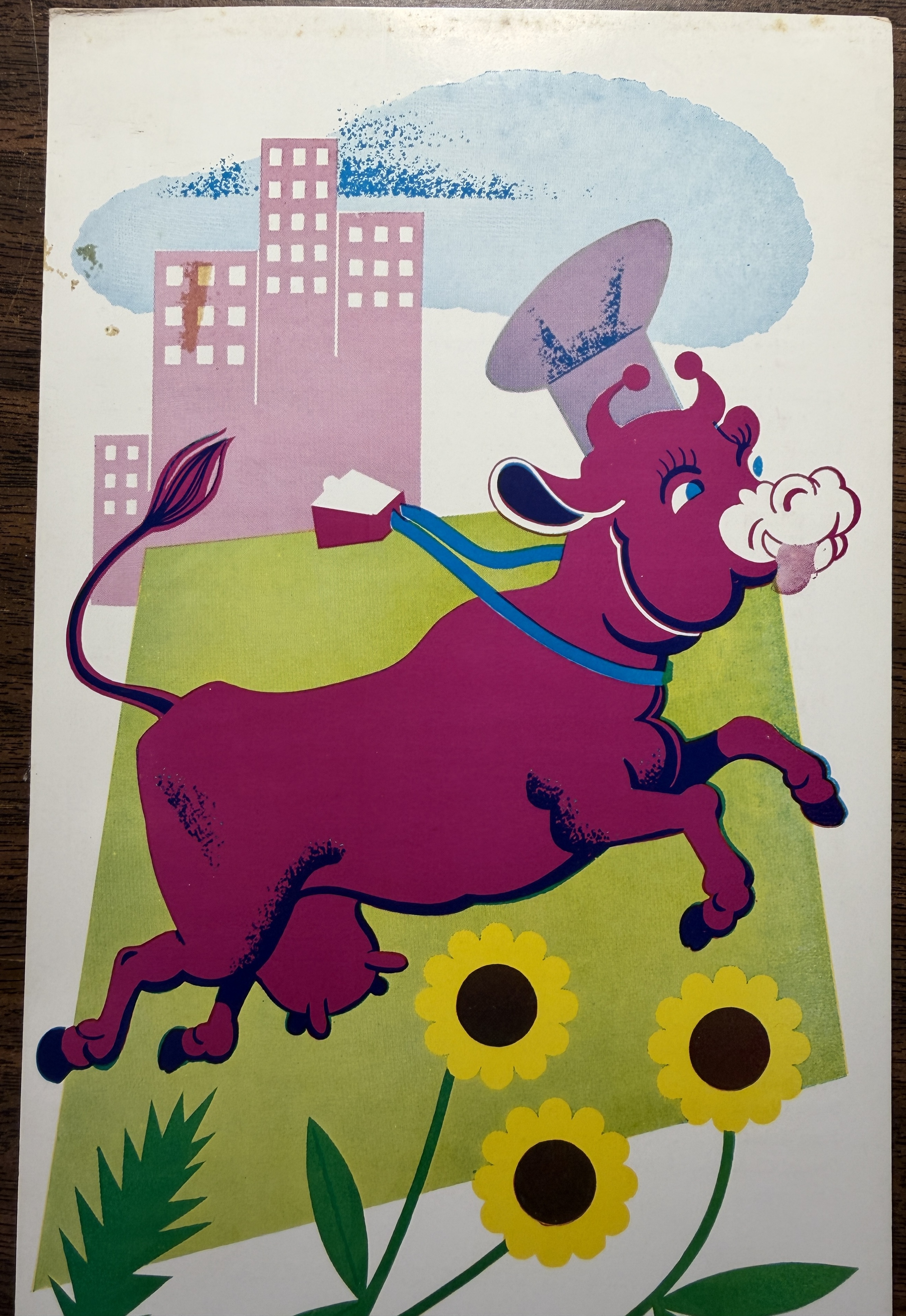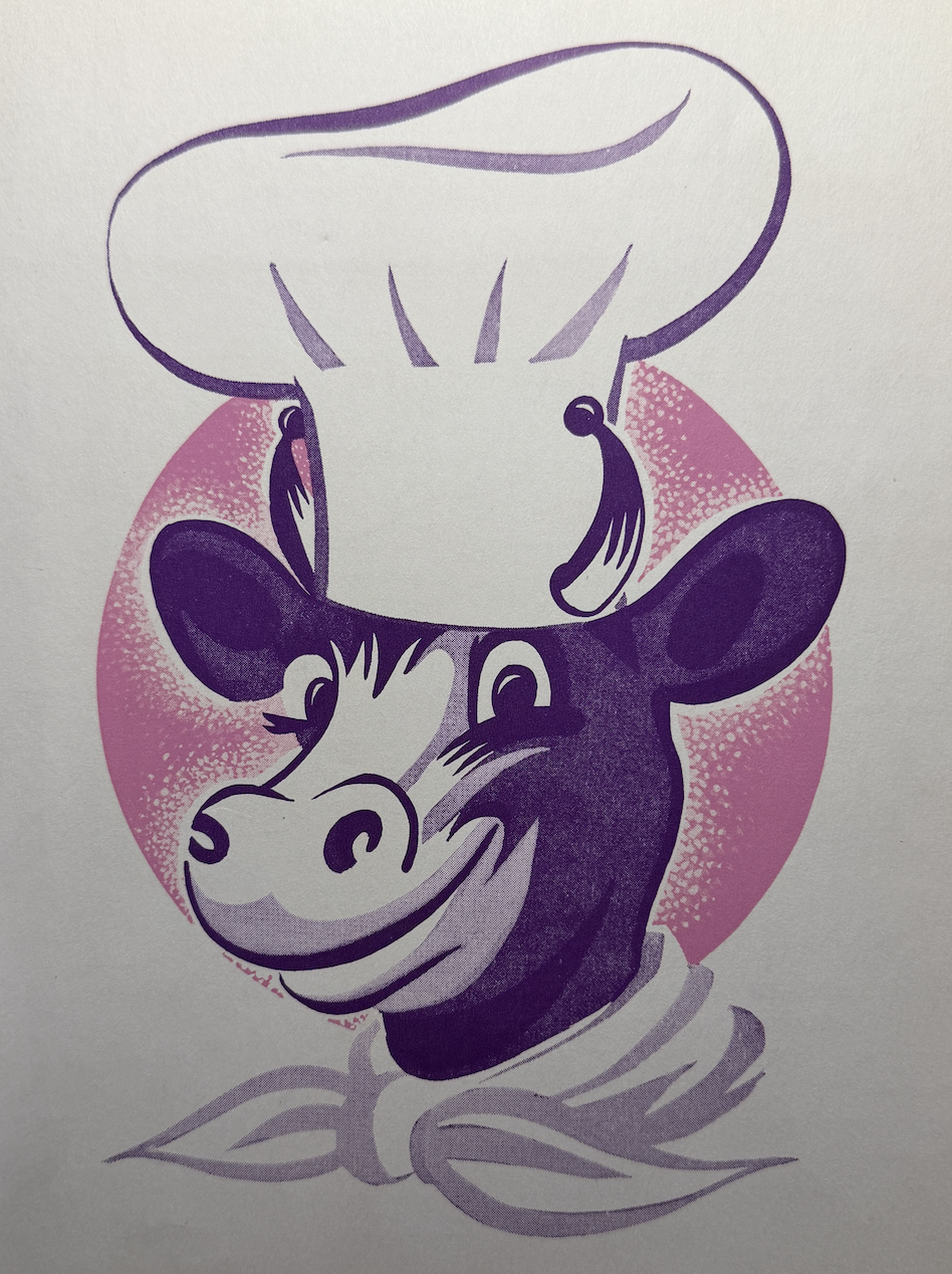 The Pick Hotels Purple Cow restaurants utilized Grell’s rendition of the cow on all its restaurant ware including glasses, cups, plates and menus.