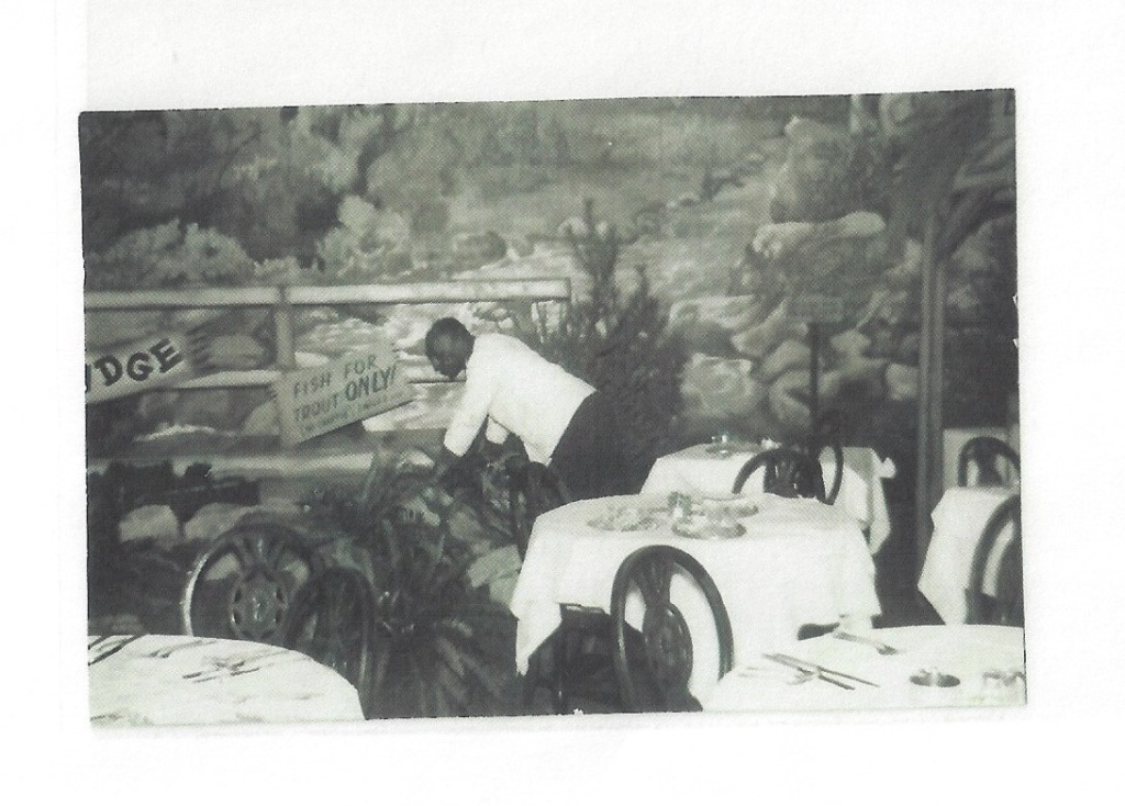 The poem for the ‘one locally themed mural’ was a highly competitive selection process where members of the public submitted their creations as part of a public competition where one jingle was selected out of thousands, then later painted onto the bottom of that locally themed mural. Menus had entry cards attached to them. Typically the winning entrant was paid $25 ($555 today) for the use of the jingle and often the event made the local newspapers. The GM Tech at the Pick-Durant was the one locally themed mural designed by Grell specifically for Flint. The other murals were utilized by Grell at multiple locations. Notice that the poem was not drawn onto the bottom of the GM Tech mural at the time the photo was taken indicating the contest for the ‘jingle’ was not over yet (see photo montage above). Someone in Flint likely created those words that were later added to the bottom of Grell’s mural by a local artist. The other ten poems were drawn on by Grell since they were reused in other locations as indicated by the 1940 Dayton ad.